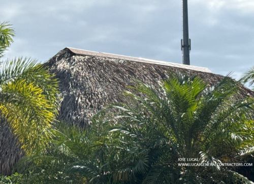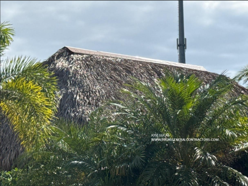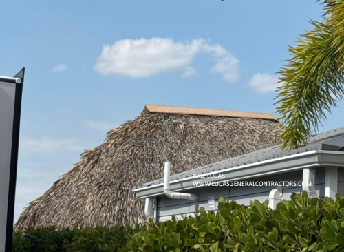The cap is primed and painted to blend with the thatch color, giving a clean, low-maintenance peak while still shedding rain.