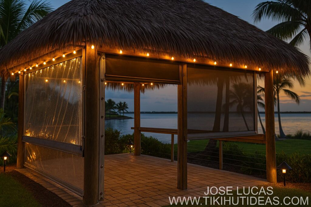Tiki Hut Weather Curtains & Shades: Clear Vinyl, Roll-Down & Mesh Options