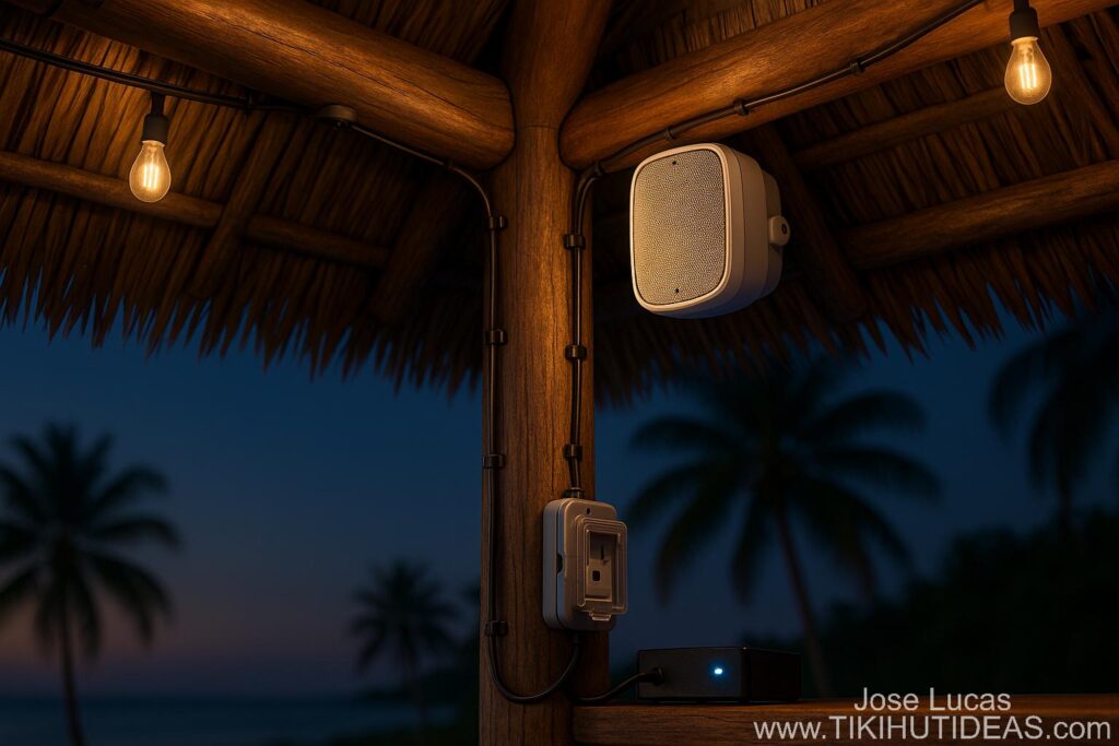 Tiki Hut Sound & Power: Discreet Speakers, Outlets & Charging
