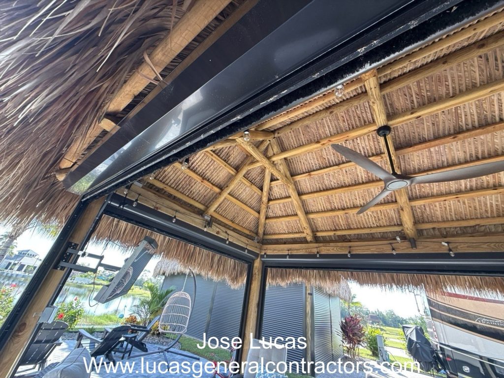 Project Summary Footprint 7′ × 38′ (lean-to, single-slope) Ends Both ends enclosed Roof Lean-to (one-way) with natural thatch Use Side-yard/RV-pad […]